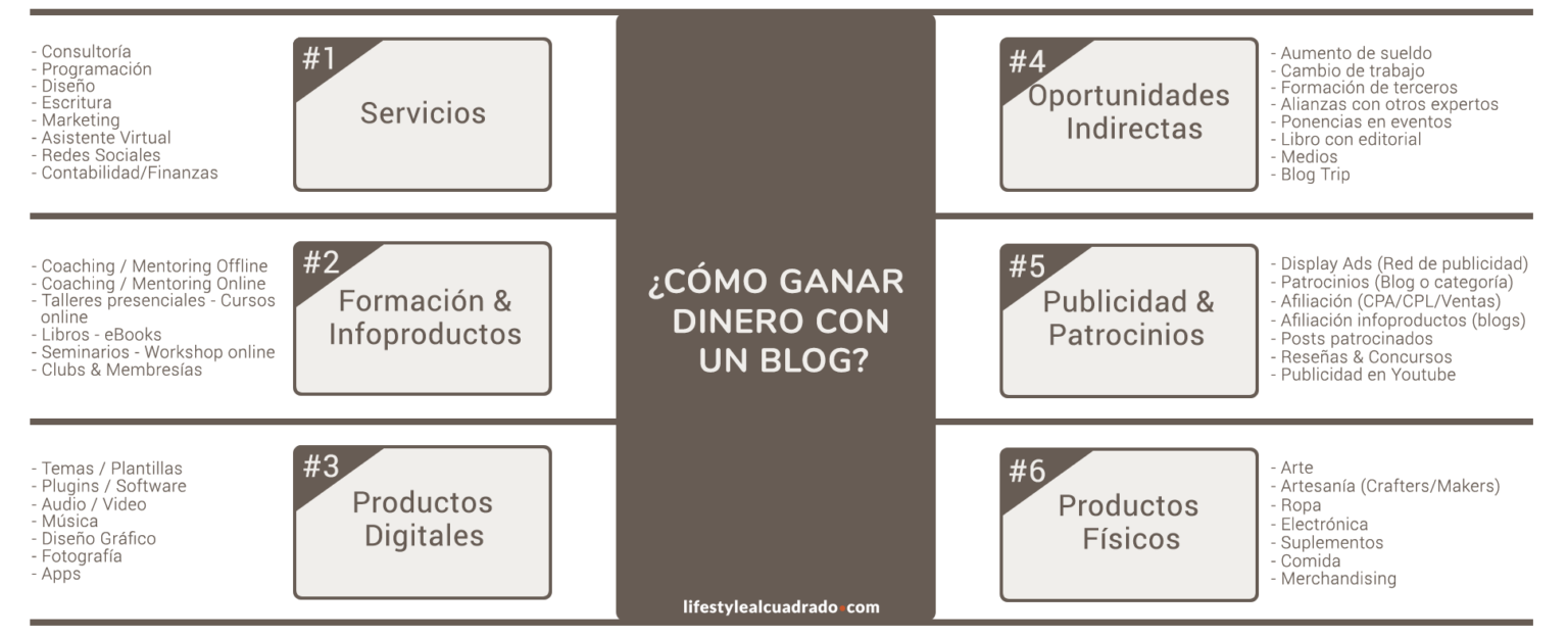 Pues déjame presentarte los 6 grandes pilares con los que puedes ganar dinero con tu blog.